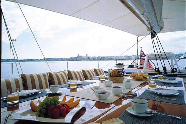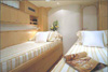 Description | 4 King berths each can convert to singles. A/C, TV, video, CD player, refrigerator & en suite head/shower in each cabin. Forward cabins have partition that can be removed to make a "master cabin." | |