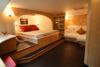 guests in 4 cabins. The master cabin has large en suite head w/ jacuzzi tub & sep shwr. Another 3 cabins have en ste heads w/ stall shwrs. MATAU is fully air conditioned through out. Crew has a separate companionway, heads and shower. |