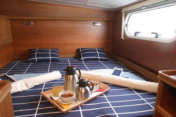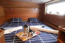 port cabin to twin singles. Berths in the two forward cabins are queen size.
