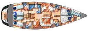 ![]() Aft cabin has double & single berths, ensuite head & shower and private access to the cockpit. Forward cabin has a double berth and ensuite head & shower. $11,450/2 $11,950/4.