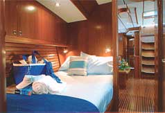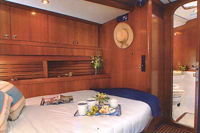 Three en suite cabins: one queen aft and two doubles forward. Captain Dan Harradine and his wife Joanna, an outstanding chef, do a great job. Recent guests wrote, “Chartering is about people and a great charter needs a great crew. You have that gift of making people happy. . . and it’s that which has made this a great charter.” Joanna is also a board-certified nanny!