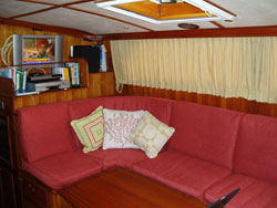 AMNERIS The combination of her three en suite cabin layout and a crew with years of experience sailing with children makes AMNERIS the perfect choice for family cruising. Aft, the full width master offers a dressing table/desk, many built-ins and two three-quarter berths with a settee between them. The master bath has a marble vanity and stall shower. There are two upper/lower single berth cabins with generous storage. Crew quarters with head & shower and dinette are forward of the galley. The spacious main salon features a stereo with interior and exterior speakers and CD player, flat screen TV with DVD player and surround-sound, board games, and an extensive selection of music and movies. The coffee table converts into a dining table seating 8 comfortably for formal dining. Fabrics and decor throughout the yacht are fine quality with an English country house air set off by the rich varnished interior. On deck, the cockpit and aft deck areas are huge and very child friendly. The cockpit has high sides with latching gates. An extended dodger covers the forward seating area and table. Going aft, the sailing cockpit can be open or covered with a bimini and fully enclosed with side curtains. Captain Alex Frew, 42, Australian, and Chef Gemma Steel, 26, English, grew up in sailing families and have been working together on yachts since meeting in Palma four years ago. Gemma comes from a family of excellent cooks. Her grandmother catered weddings for up to 200 guests, and her mother teaches at a cooking school. Her sister is a yacht chef and her brother is a yacht captain. They enjoy having children of any age aboard, having worked the last two years for a private yacht owner with a young family. Alex finds the beautiful, 10 foot Trinka sailing dinghy built in Mystic, Connecticut is perfect for teaching children to sail. With fishing and snorkeling gear and lots of games, Alex and Gemma are happy to entertain children so parents can truly relax. In addition to the crew's watchful supervision Amneris has full child safety netting for an extra safety measure. |