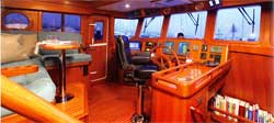 The flybridge gives a 360 degree view. In the wheelhouse an L-shaped settee and teak table provide a cozy spot for relaxing. After twelve years in the financial services industry, Captain Frederic Folsom changed course to do what he really loved. He is a graduate of the Chapman School of Seamanship with more than ten years experience as a professional skipper on research vessels and yachts. Frederic has been on Kenepuru since she was commissioned. $13,000/ 4, plus all, captain only - Virgin Islands to St. Martin