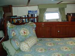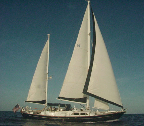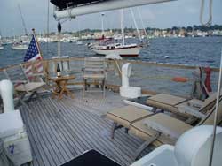 our family." A 'pleasure cruise' is only pleasurable when, yes, the boat is lovely, but mostly when the people on board have an energy, a chemistry that flows naturally without effort, infused with fun. Gemma, you are a superb cook. Your meals were fresh and refreshing, healthy and delicious. I really liked your listening style - I would mention something casually and with enthusiasm and in short order it would appear on the menu. You aimed to please and you did. I would also say that you, Gemma, have a helpful, appealing style with the children and were especially delightful when our 13 year old tried waterskiing for her first time. Although she didn't stay up for long, you made her feel empowered, not defeated. Next time! Alex, thank you for your clear-headed, forthright expertise. You had everyone's respect, including my 'much sailed' husband and an otherwise blasé 16 year old! Your Ozzie (Aussie) charm and natural courtesy, coupled with serious sailing skills and constant carefulness, made all aboard feel relaxed and secure. Julia was a very kind, respectful and peaceful presence, special thanks to Julia. Thank you for a lovely holiday. Our time aboard Amneris is a perfect start to the New Year. (December 28 to January 3, Antigua - Antigua) Three en suite cabins: Aft, the full width master offers two three quarter berths, a dressing table/desk, many built-ins and two three-quarter berths with a settee between them. The master bath has a marble vanity & a stall shower with seat. There are two upper/lower single berth cabins with generous storage. The huge cockpit, with high coamings and latching gates, is secure for small children, and there is full safety netting for the lifelines. $14,900/2 $15,900/4 $16,900/6 - inclusive x bar, taxes, dockage & communications.
