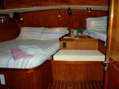 vanity mirror, plus fans and lights on each side of the queen-sized