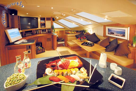 True North drops off in Tortola March 24 and picks up in Canouan April 7, giving your clients the option of either the BVI's or the Grenadines for their cruising area. Enjoy the finest furnishings, fittings, cuisine and service aboard your private waterfront hotel with luxury accommodations for eight in four cabins. The master cabin has a king-sized bed; the three guest cabins have queens; the sheets are 600 thread count and the bathrobes are monogrammed. Each cabin has a TV & DVD, Play station 2 and a private en suite shower and head. Sunning, snoozing in the hammock chair or playing water sports, True North has everything you're looking for in a sailing vacation: Water skis, kneeboard, towing tube, kayaks, snorkeling, scuba equipment (for certified divers only). Your crew of four is headed by Captain Rob McGovern and his wife Tiffany, the chef, assisted by Euros and Emily Williams, the mate and stewardess. Qualifications, training, personality and experience - these four dedicated professionals are one of the best teams in chartering. Winter 2007 rates: $25,000/6 $27,500/8 - inclusive x bar, taxes, dockage & communications.