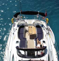large cockpit. Owner/Captain Ron Sturrock and Hostess Karen Fraser are your charming British crew. A captain in the British Merchant Navy for 25 years, Ron has circumnavigated the world many times. His laid-back, unflappable and very professional manner puts everyone at ease immediately. Karen's first boat experience was sailing across the Atlantic on a small yacht. Now she has logged 20,000 miles, including 3 transatlantic crossings. Karen is a keen and adventurous cook and loves to see people enjoy their food. Her easygoing nature and love of entertaining make her an ideal hostess. Past guests say, "A wonderful trip with lots of discoveries - great sailing, warm weather. Wonderful Karen and Ron, always accommodating, always making it memorable for us to spend a great holiday time which we shall remember for a long time! “ A good vacation value at USD $6,000/2 $7,500/4 $9,000/6 - inclusive x bar, taxes, dockage & communications. ___________________________ |