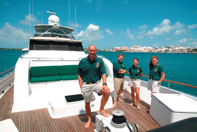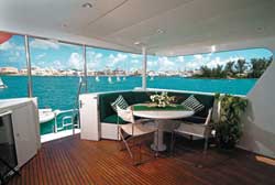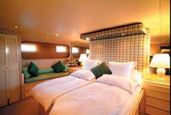 In addition to full scuba diving packages, Bermuda IV offers “Bermuda Heritage” cruises with all-inclusive museum passes. Take advantage of Captain Davis’ local knowledge to find a private beach for a secluded afternoon complete with a gourmet picnic basket packed by the chef. Don’t forget the many beautiful golf courses and tennis courts that dot the islands. Three en suite cabins: King aft master has a Jacuzzi tub and shower in the en suite bath. Two en suite twin lower singles cabins have one Pullman berth each. $25,200/2 $26,600/4 $28,000/6 - Inclusive except special requests, taxes, dockage and communications. (Includes Scuba). Pays travel agent commission.