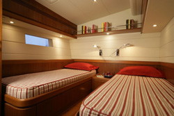 Available Winter 2008 - the newest addition to the Nicholson fleet! A striking Bruce Farr designed deck saloon sloop, MATELOT is in mint condition - virtually a new yacht - having been used only for boat shows since her 2005 launching. The master suite, forward of the saloon, features a king size bed, sitting area, and desk/vanity. The full beam master bath has an exceptionally spacious shower with a glass door and built-in seat. Aft of the salon are two en suite guest cabins with twin lower singles. For maximum guest privacy, the crew quarters are all the way aft with separate access to the cockpit Captain Angus Fuller and Chef Jessie Cuthbert ran very successful charter seasons for several years on the old Matelot, an Oyster 66 and Tearaway, an Oyster 56. Angus was born in the UK in 1977 and took up sailing at the age of two weeks. Since then he has logged over 120,000 sea miles including a race circumnavigating the world upwind (the wrong way ‘round). Captain Fuller has cruised the Caribbean extensively, the Mediterranean from the Balearics to Croatia, the east coast of the United States, the Galapagos and Norway above the Arctic circle. Jessie, British, 29, trained at the Rosie Davies School of Cookery before joining Angus on charter yachts. She describes her cooking as international ’whilst using all the best local ingredients cooked to the guests’ preferences.’ Jessie has also sailed all her life and was a trialist in the 470’s in the Sydney Olympics as well as Youth World Champion – twice! Angus and Jessie’s winning personalities and professional skills ensure that cruising and dining are of the highest standard. On charter Matelot will have three crew. Winter 2008 Rates: |