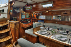 Exquisite fabrics, original oil paintings, beveled glass cabinets - all