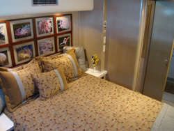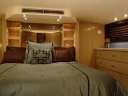 New soft furnishings and exterior upholstery have MAGIC CARPET fresh and ready for guests. Master (king) and VIP (queen) en suite staterooms, each with private access from the salon, accommodate a maximum of four guests, six with prior approval . ‘His ‘n hers’ bathrooms in the master suite flank a central five foot square Jacuzzi tub.