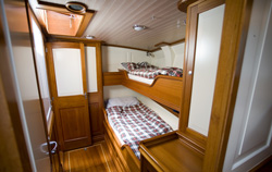 child. Forward of the salon, the guest cabin with upper / lower singles