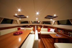MATELOT Accommodation Description: Full beam Master forward with ensuite heads with separate shower. Lower and raised saloons aft of mast and forward of main companionway. 2 identical twin guest cabins aft with identical ensuite heads and separate showers. Crew quarters & galley aft with own companionway. |