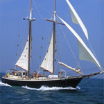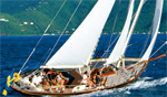 a queen size bed plus pullman, shower and head. $19,500 for 2 guests, $20,500/4 US$ $21,500/6 weekly +all expenses Summer 2009 special: 8 days for the price of 7! Sleeps 4 In 2 Cabins Museum quality antique! Guest aft queen cabin has two opening ports & companionway to Cockpit. Guest Forward Starboard cabin has two bunks upper / lower singles. Crew quarters in forward Port cabin and share forward starboard head. The Main head is off the main salon with sink, toilet & full shower. The forward head is to Starboard with sink, and Toilet. LELANTA typically charter with (2) guests using the private Aft cabin & (2) guests in the private Forward Starboard cabin. The Port cabin is used either for (2) additional guest bunks or for crew in combination with Forepeak bunk. Crew share companionway, heads and showers with guests. Also available for day charters & photo shoots out of Sag Harbor, New York. $14,000/2 guests, $16,000 /4 weekly, +all expenses Sleeps 6 In 3 Cabins A true gentleman's yacht with thoroughbred sailing! Three en suite cabins The master cabin has 2 single beds -- one port, one starboard, plus en suite shower and head. Port and starboard midship guest cabins have upper / lower single beds and ensuite heads and showers. She is fully air conditioned through out. Crew quarters forward with separate companionway, head & shower. $18,500 weekly for up to 6 guests, +all expenses Day Charters for