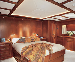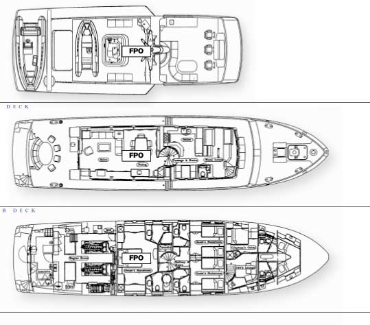 Three staterooms radiate from a central foyer. The master stateroom has a centerline queen bed and separate his ‘n hers baths, one with a marble shower and one with a steam shower plus whirlpool tub. Two guest staterooms have twin lower singles and enclosed marble showers in the en suite baths. TIVOLI is fully air conditioned through out. Crew has a separate companionway, heads and shower. Features & Amenities Large CD Library Over 1000 Albums on-line throughout the Yacht on Sonos also Internet music & news on Serius Internet Radio Ability to use I-Pod’s in all Guest Cabins - Ability to use I-Pod’s Fly Bridge & Main Saloon Stereo System: Surround sound Movie System - HiDef TV's, 40" Saloon & 40" Master Stateroom (new 2009) - Movie Library - 450 On-Line movies Dinghy: Novurania / 18ft 8in (5.0m) / 2/50HP |