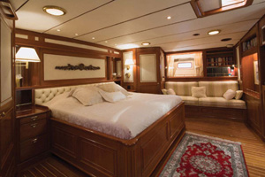 The Master cabin has a king size bed, bath/tub, shower and toilet.