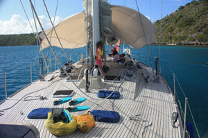 ![]() They've been busy through the summer in Trinidad doing routine exterior paintwork and interior varnishing, keeping Pacific Wave in that all important ‘tip top’ condition –
