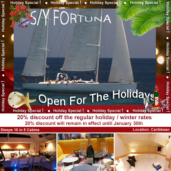 Attention brokers: We invite you to copy & send a "broker friendly" version of this eNews to your own clients. Broker friendly link: Yacht Fortuna - Winter/Holiday Special! |