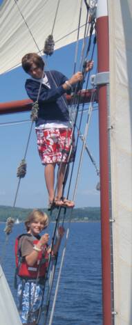 tuned -- the Islesboro schedule will be posted at a later date. "Our goal is that the students who take our course will be better prepared to handle the unexpected circumstances that can arise when boating. An increased awareness will help them avoid dangerous situations. BONNIE LYNN is the ideal classroom. Last summer, in our beautiful homeport of Islesboro, Maine, we offered 2 day / 1 night courses for 9 - 11 year olds and 3 day / 2 night courses for 12-15 year olds. Six to eight students slept onboard and worked as part of the crew." - Captains Bonnie & Earl McKenzie |