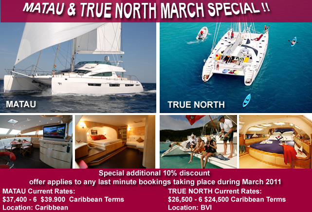 Crew John & Maxine White will then take TRUE NORTH south to Panama where the yacht is available for charters in Bocas del Toro & the San Blas Islands through October 2011. |