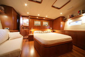 MATELOT Accommodates 6 Guest in 3 Cabins: Combining the expert Italian styling of Nauta Design & the superb architecture of Farr Yacht Design, MATELOT offers 3 comfortable guest staterooms plus performance sailing. The full beam Master Stateroom located forward of the panoramic deck salon has a walk around king bed, settee & vanity / writing desk, ensuite bath with stall shower. Two identical guest cabins amidships, aft of the salon each have twin lower single beds with ensuite heads & stall showers. Crew quarters and galley are fully aft with separate companionway. MATELOT is in "like new" condition following her winter spent in the shipyard in New Zealand. Charming veteran British crew are Captain Angus Fuller & chef Jessie Fuller (+1) who have several seasons of busy chartering in Croatia and the Adriatic and are happy to make itinerary suggestions. |