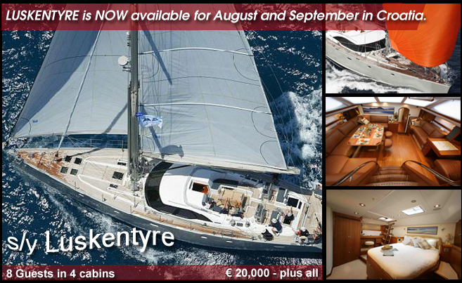 Attention brokers: We invite you to copy & send a "broker friendly" version of this eNews to your own clients. Broker friendly link: Sailing Yacht Luskentyre is Now available for August and September in Croatia |