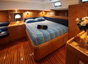 The port cabin has upper & lower singles and its own head and shower. Crew cabin is forward with its own head. The crew shares a shower with the starboard guest cabin. Wanderer is fully air conditioned.