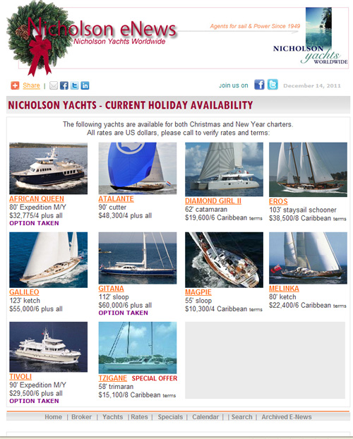 NICHOLSON YACHTS - CURRENT HOLIDAY AVAILABILITY |
