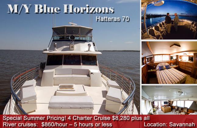 cruises: $860/hour – 5 hours or less includes yacht, fuel, captain &